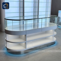 Белая стеклянная витрина с LED-подсветкой, изогнутая, для розничной торговли, на заказ, для магазина, прилавок, шкафов и стеллажей
